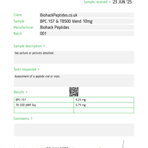 This 10mg peptide blend combines two widely studied compounds — BPC 157 and TB500 — each at 5mg per vial. Together, they are researched for their potential synergistic effects on tissue regeneration, inflammation modulation, and recovery in preclinical studies.