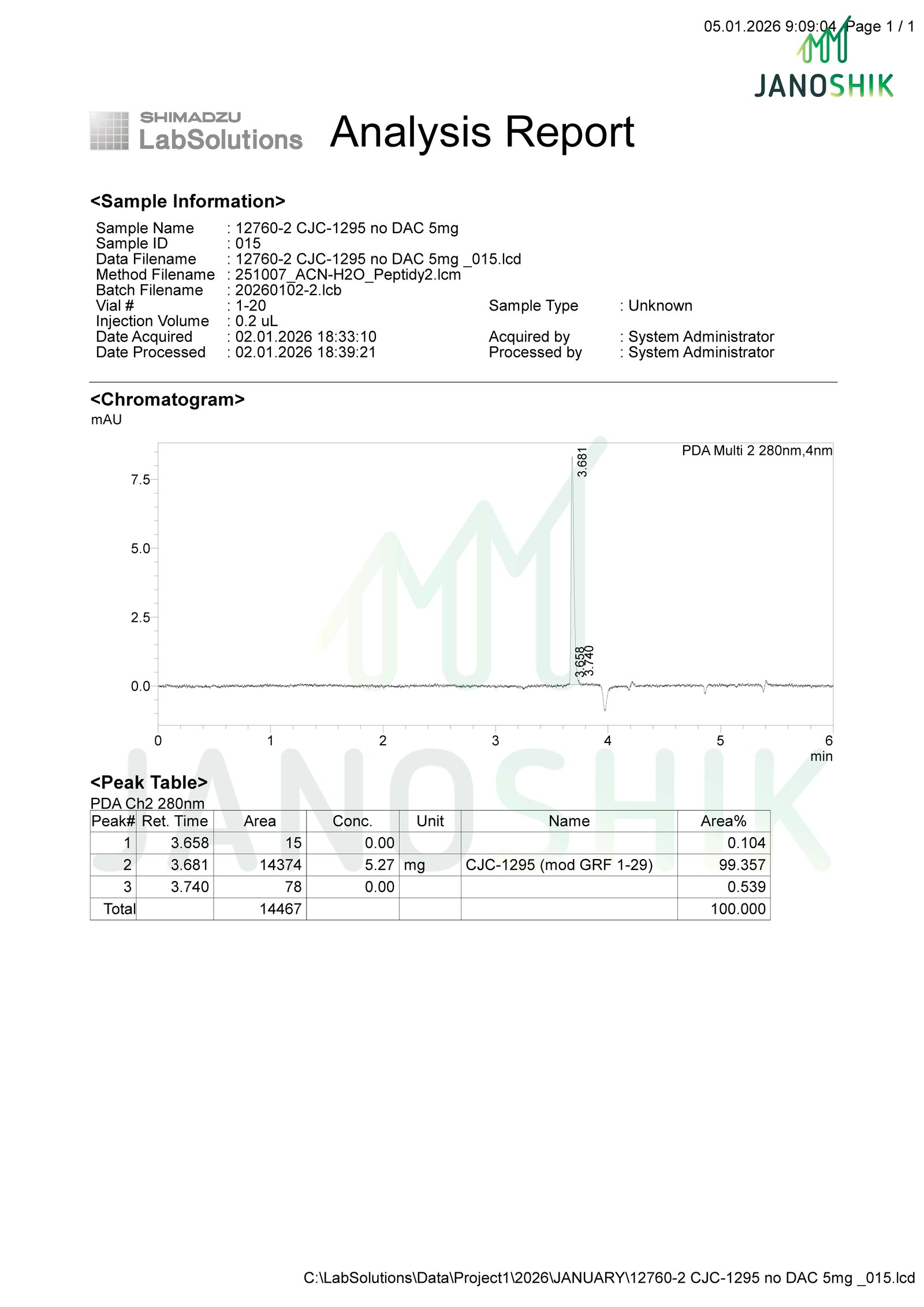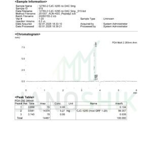 CJC 1295 (no DAC) is widely used in research investigating intermittent growth hormone secretion, recovery, muscle repair, and metabolic regulation. Its short half-life makes it suitable for studies focused on mimicking natural hormone rhythms.