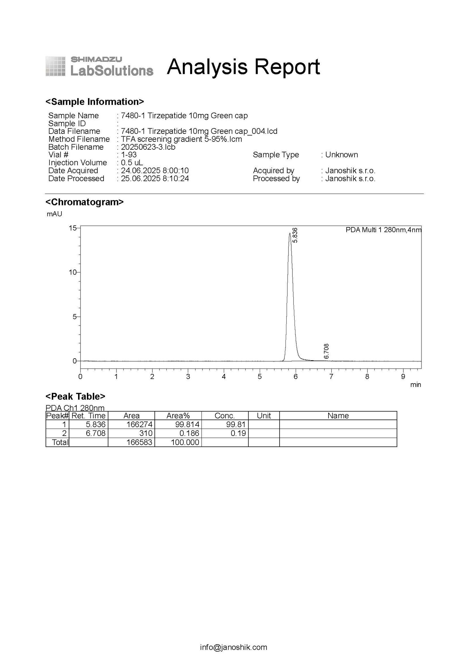 Each batch is verified by independent lab testing to confirm identity, purity, and sterility. View Certificate of Analysis here.